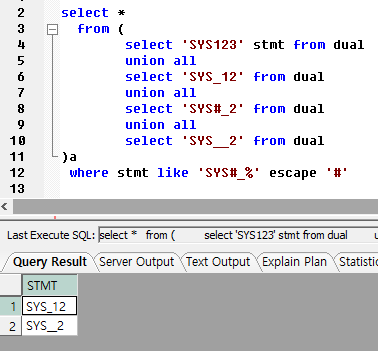 이러한 경우를 위해 오라클에서는 ESCAPE 문을 제공한다.