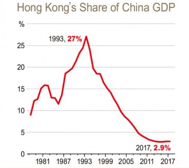 2000년대 이후 중국이 개방정책에 힘입어 빠르게 성장하면서 지금 홍콩의 GDP 비중은