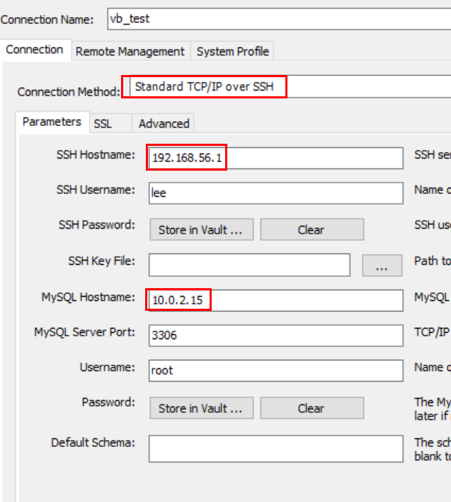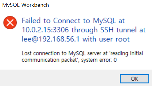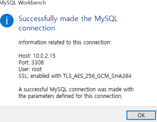 이제 workbench 에서 가상머신 mysql DB 에 접속해보자.