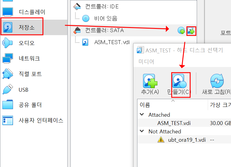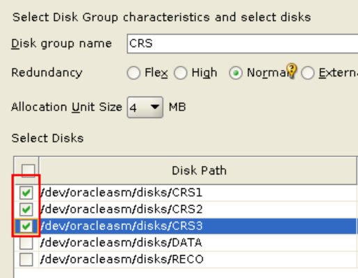 ASM 에서 사용할 디스크그룹을 아래와 같이 추가하자