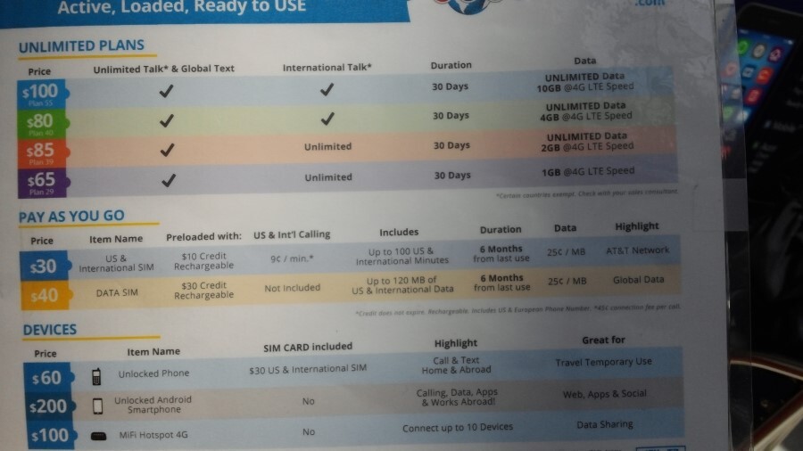 공항에 가면 유심파는 직원이 있는데 첫달 89 불, 익월부터 39 불로