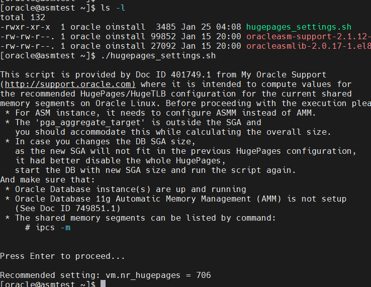 my oracle support 에 적절한 갯수 hugepage 를 계산하는 shell script (hugepages_settings.sh)가 있다.