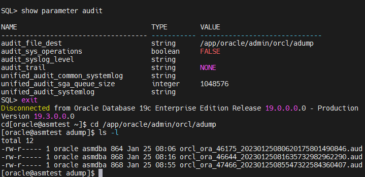 show parameter audit 으로 audit 파일 destination 확인