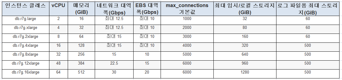 AWS instance class 에 따른 제약 사항 (r7g)