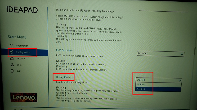 ** 추가로 Hotkey mode 로 되어있다면 disable 로 바꿔준다.