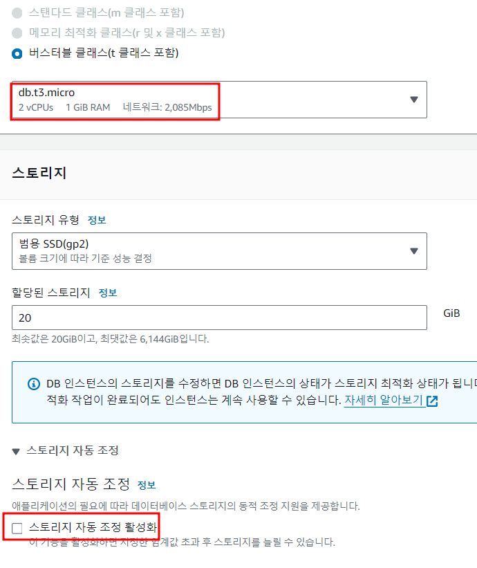 디폴트인 db.t3.micro 를 선택했다.