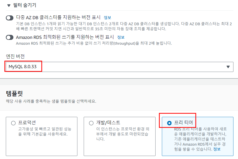엔진버전은 뭘 해도 상관없지만 나는 8.0.33 을 선택했다.