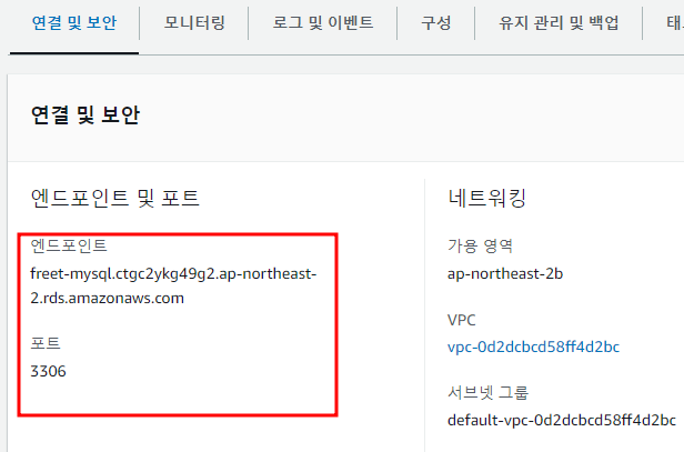 엔드포인트와 포트정보를 확인한다.