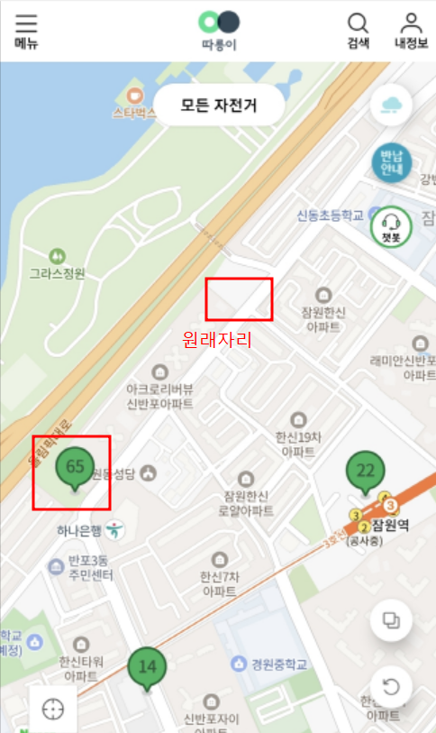 따릉이 정거장이 원래는 잠원역에서 나오면 한강공원 넘어가기 바로 전에 있는 다리에 있어서 거기까지 타고 갈수 있었는데