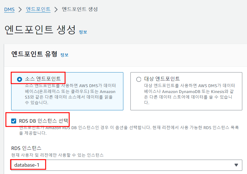 소스, 타겟 엔드포인트를 생성하고 연결테스트까지 해본다