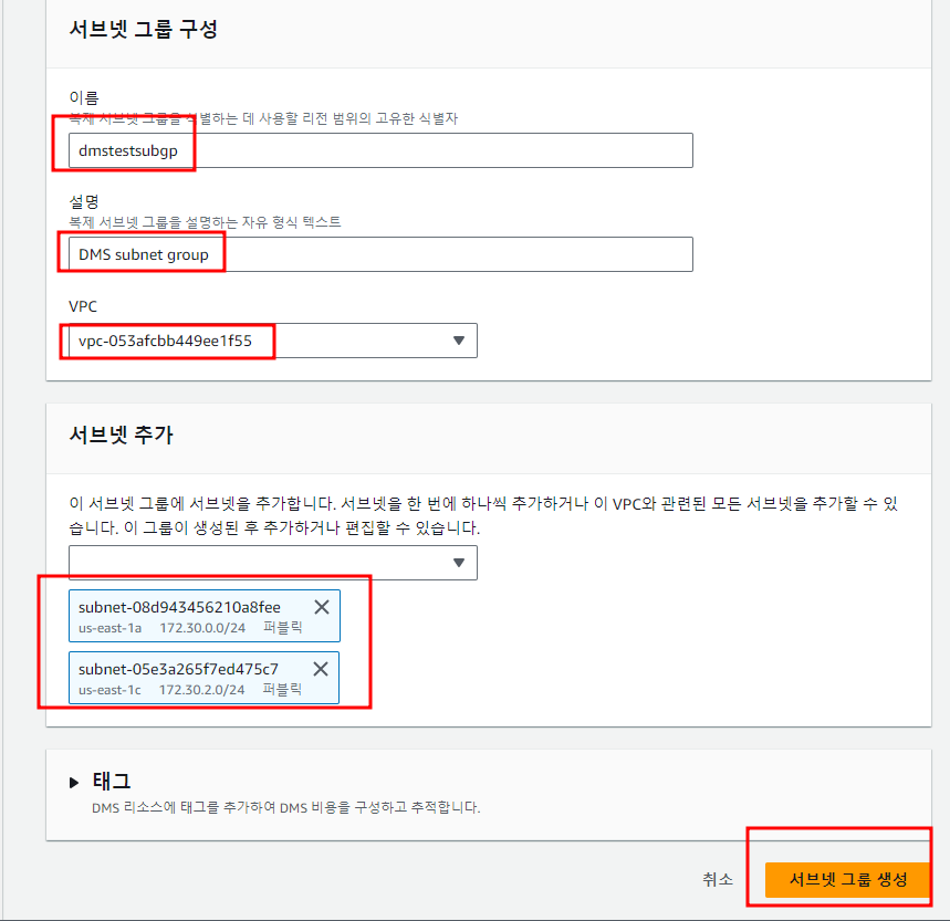- subnet group 생성