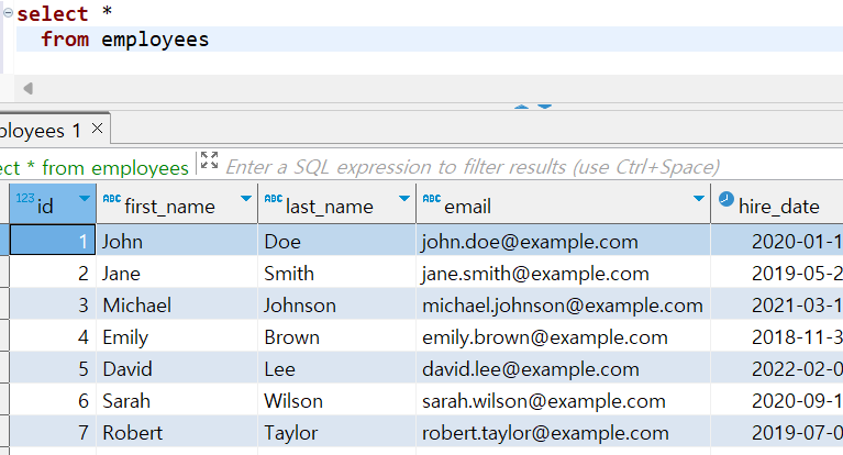 select * from employees;