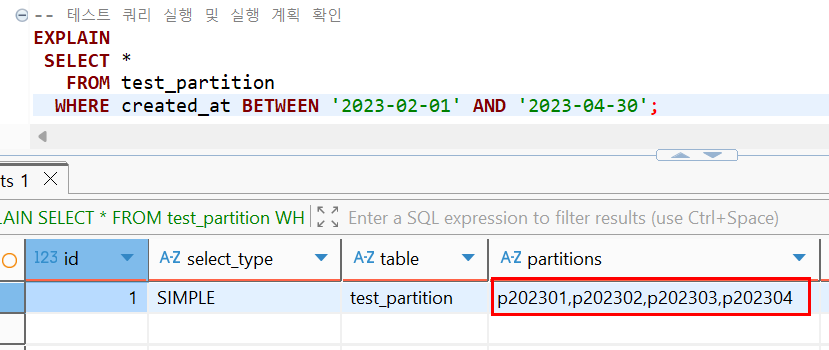 첫번째 파티션을 무조건 조회하게 되어있다.