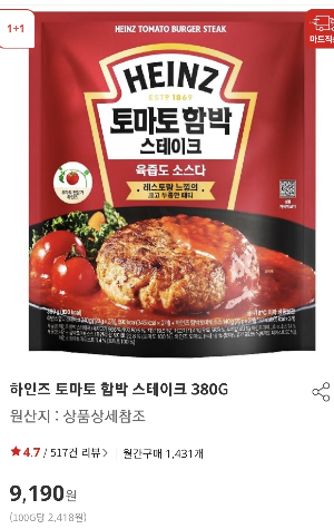 홈플러스에서 구매한 1+1 하인즈 토마토 함박스테이크 후기