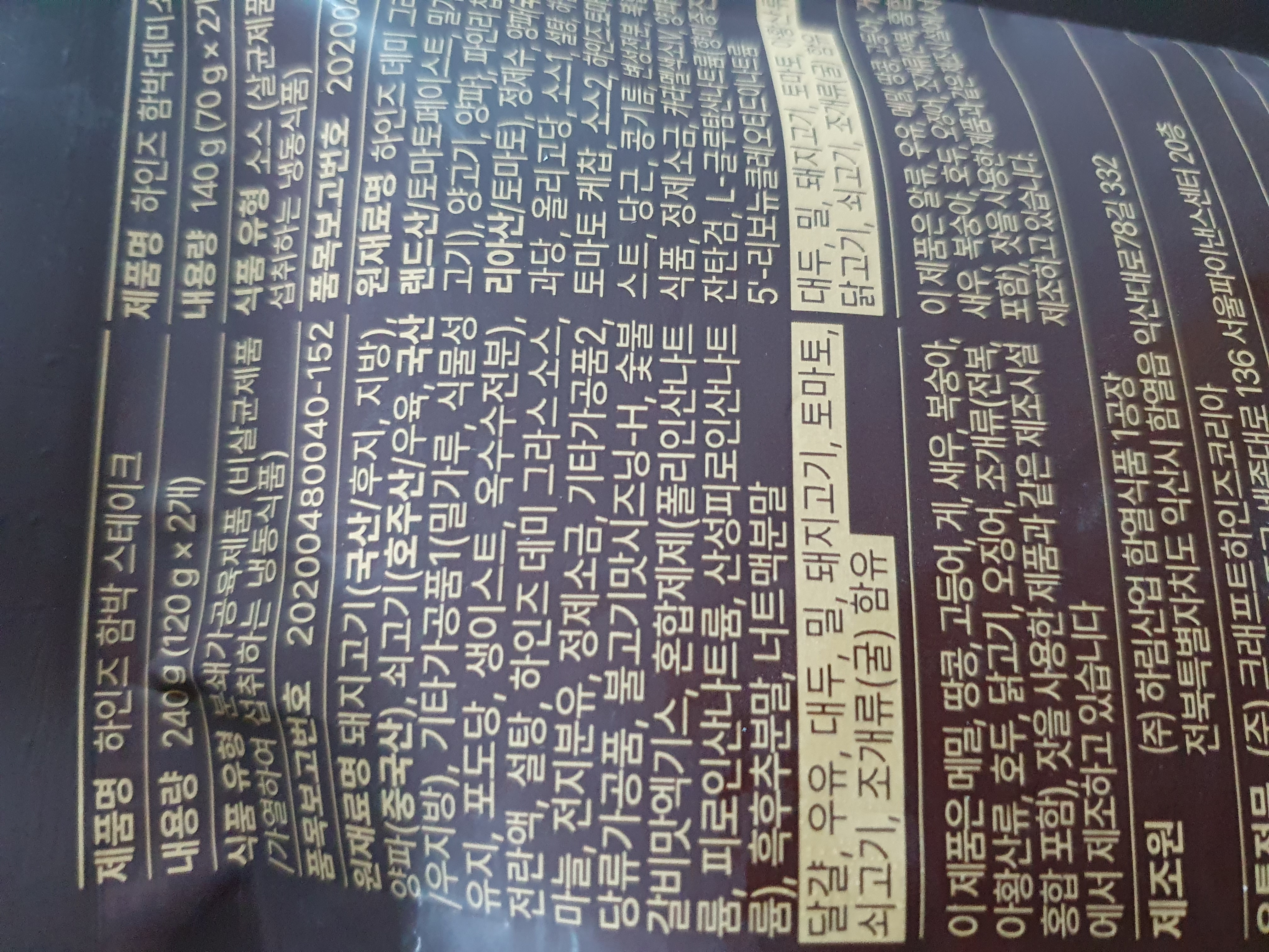 구성은 이렇게 되어있습니다. 120G 패티 2장이 한봉, 소스가 2봉씩 들어있구요.