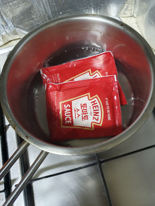 소스는 끊는물에 중탕 2분을 합니다.