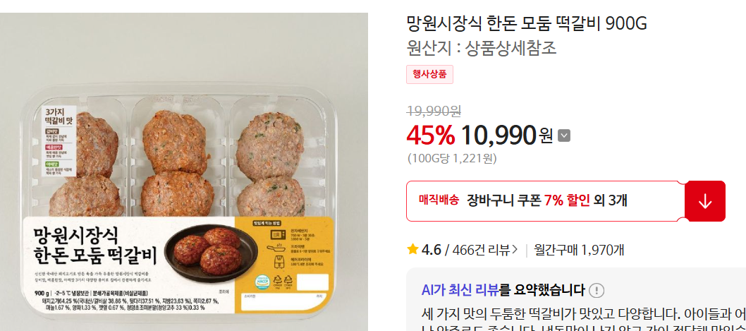 ## 플러스 홈플러스 망원시장식 떡갈비