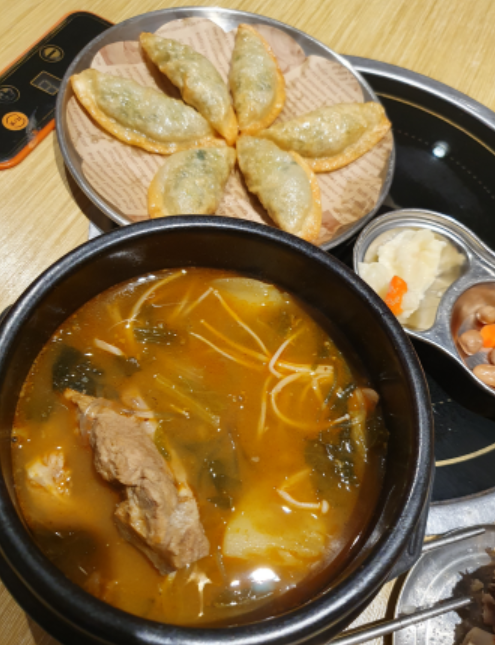 만두는 소위 말하는 육즙이라는 것이 꽤나 느끼했다. 그리고 자세히 보면 몇개 뒤집어진 채로 구웠다.