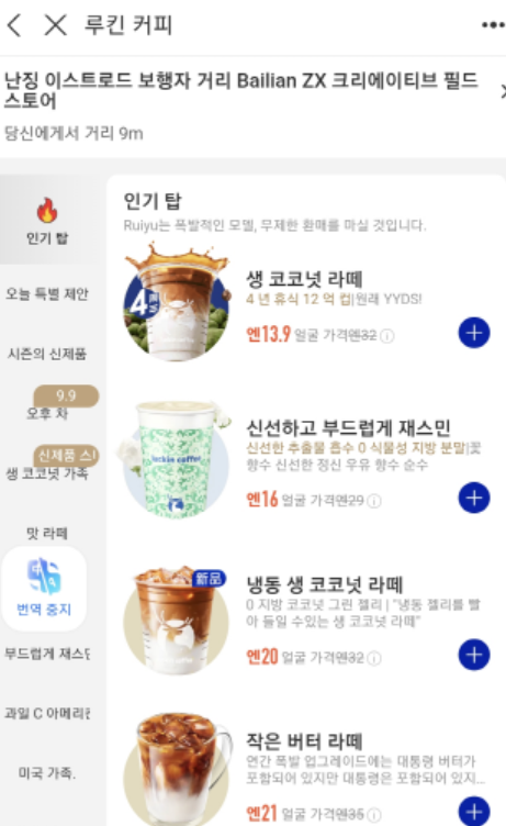 아마 유일한 저가 커피 였던 듯 하다. 난징서로 역에 있다.