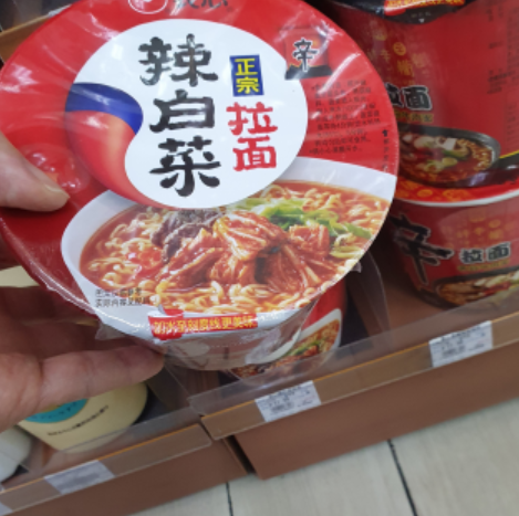 이것은 김치 신라면인가? 한국에서 못 본 건데, 어쨋든 국물은 한국의 맛. 포크가 안에 있다.