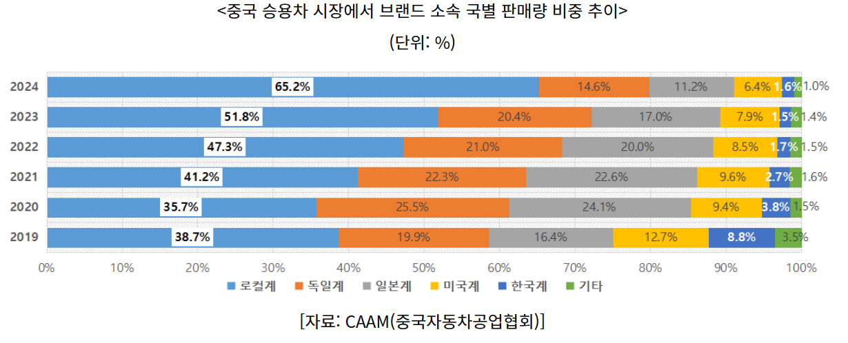 궁금해서 찾아봤는데 중국내 자동차 판매량 비중이 BYD 등의 로컬이 가파르게 성장해왔고, 넘버 투는 거의 독일이 해왔다. 현차는 존재감이 없네.. ㅜ