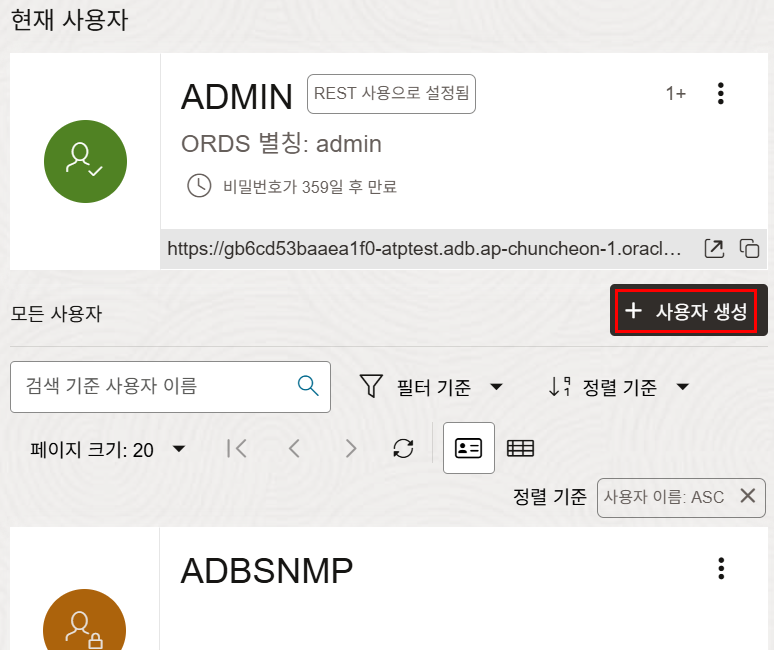 사용자 생성을 눌러서 국민 유저 'SCOTT' 을 만들어보자.