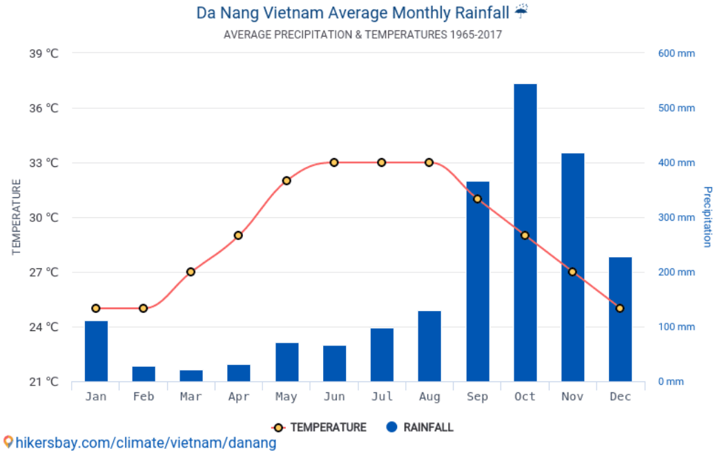 아래는 hikersbay.com 에서 가져온 다낭 연중 날씨 추이다.