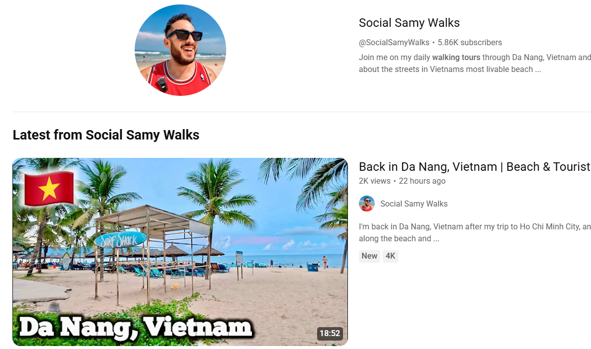 다낭 길거리를 돌아다니면서 수다떠는 social samy walks 라는 독일 유튜버 채널이 있다. www.youtube.com/@SocialSamyWalks