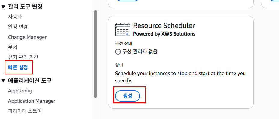 Systems manager 메뉴로 이동해서 quick setup 을 클릭