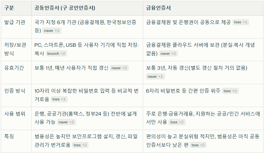 # 금융인증서 공동인증서 차이