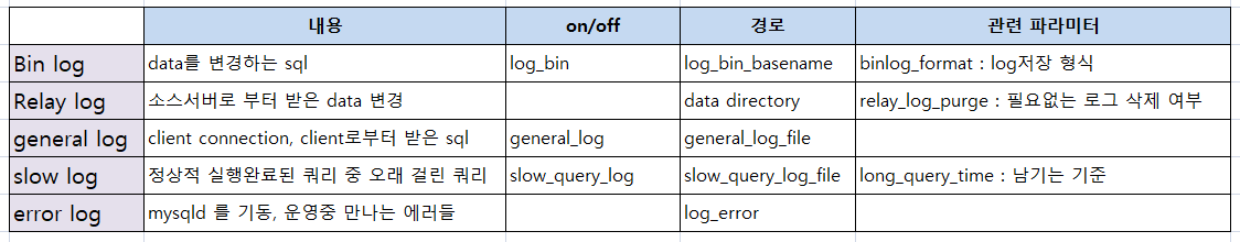 반면 binary log 는 실행시간에 따라 기록이 된다.