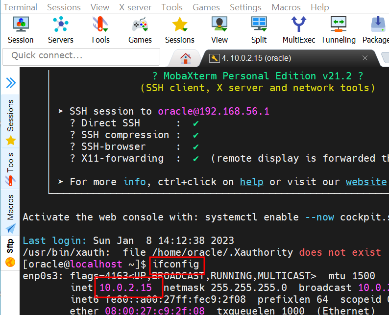 이제 터미널 ( 저는 MobaXterm 를 사용) 에서 접속해 봅니다.