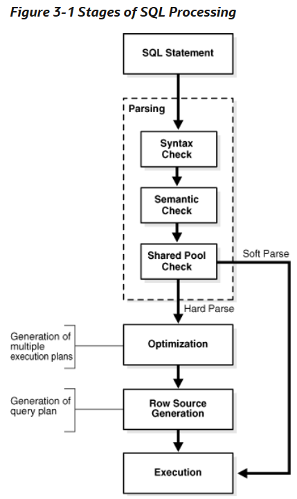 오라클은 소프트 파싱과 하드 파싱의 개념을 가지고 있다.