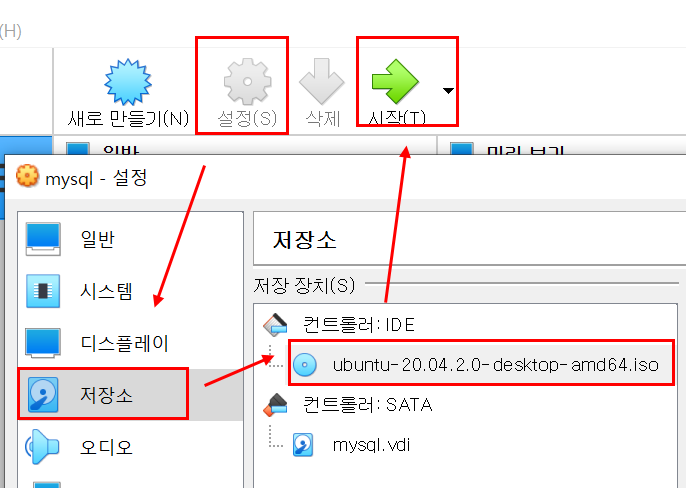 설정에서 저장소에서 아까 다운받은 우분투 이미지를 로드하자
