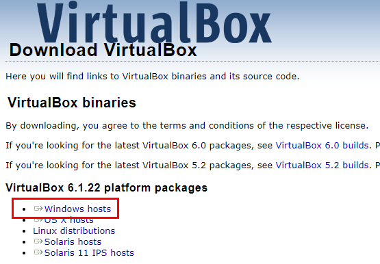 버추얼박스를 설치할 로컬pc 는 윈도우니까 windows hosts 를 선택